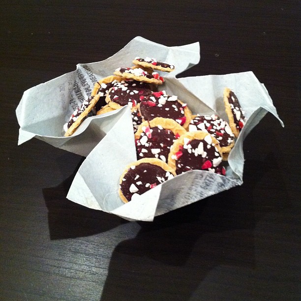 I actually find this bowl to be really ugly, in part, because the only plastic bags I found were some small trash bags. Really difficult plastic to fuse. It took me over an hour to melt them flat enough to create a usable sheet of plastic. My original idea was to make a prototype of an origami box lamp. But the darn thing would not stay folded. So I let it pop open and filled it with cookies. Voila. An ugly plastic bowl. If only I could make it out of stainless steel. Now that might be cool…