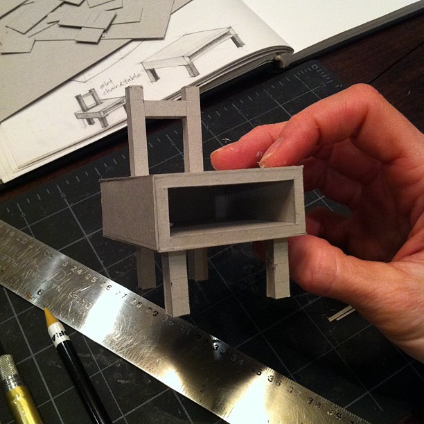 Image | January 26, 2012August 10, 2015 | plyders Day 17 – Model of a chair design (Taken with instagram) Share this: Click to share on X (Opens in new window) X Click to share on Facebook (Opens in new window) Facebook Click to email a link to a friend (Opens in new window) Email Click to share on Tumblr (Opens in new window) Tumblr Click to share on Pinterest (Opens in new window) Pinterest More Click to share on LinkedIn (Opens in new window) LinkedIn Like Loading...