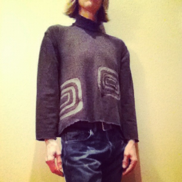Day 43 – Like Day 29, I felted an XXL men’s wool turtle neck, cut and altered it into a new design, and added a needle-felted appliqué. (Taken with instagram)