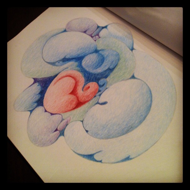 Day 71 – A bloodle (blob doodle). I had to set aside the backpack because I am struggling with turning the straps right side out. Darn upholstery fabric. (Taken with instagram)