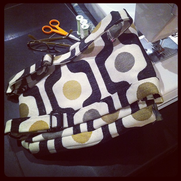 Day 73 – Made some progress on the upholstery fabric backpack…only because my daughter keeps asking when I’ll be finished so she can have it. (Taken with instagram)