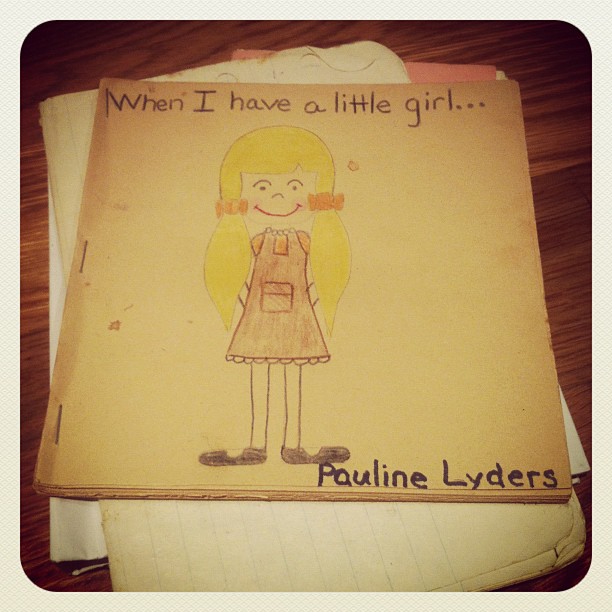Day 127 – I modified the sock creature again. But thought it more interesting to share that my daughter found some paper books I had made when I was her age. One of them is called “When I have a little girl…” which basically is a list of prohibited behaviors. “Mom, you never let me do any of these things! I think there should be a day when I get to do all of them – except maybe draw on walls since we are just renting, or beat up on my little brother since I don’t have one.” Very reasonable. (Taken with instagram)