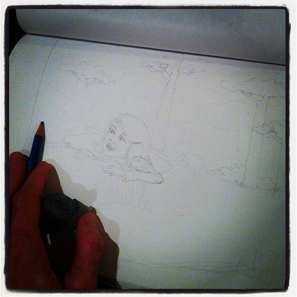 Day 139 – The faintest beginnings of another page in the children’s book. “…and reach Earth’s other side?” By the way, the other side of the US is ocean. I decided my girl didn’t dig straight down, so she landed somewhere in Madagascar among the baobab trees. At least that’s the idea so far. (Taken with instagram)