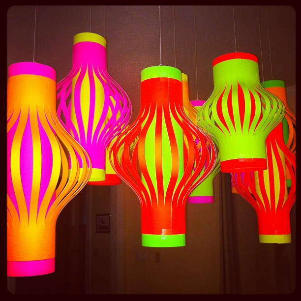 Day 155 – Finished and hung 10 neon posterboard lanterns. The dance party decor will be complete with pixelated wall art using neon ‘Post its,’ neon poster board covering all windows, black lights, neon balloons, and lots of glow bracelets, wands, etc. So fun! (Taken with Instagram)