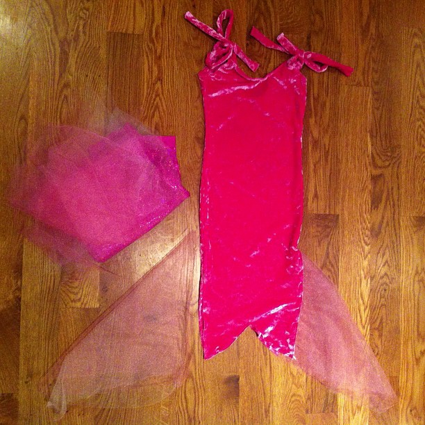 Day 284 – I looked through my fabric stash and found some pink velvet that I bought over 5 years ago when Adin was obsessed with pink. Now little Stella will have a simple, pink mermaid costume.