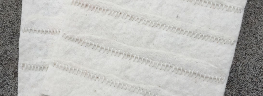 This process works best on a t-shirt that does not have side seams. After cutting off the bottom hem and trimming off the seam, I then the hem along the fold and created two strips of fabric. I pull them to stretch the fabric and make it curl along its length, then tie the strips together. Then I cut a spiral from the bottom of the t-shirt up to the arms – a single 1″ wide strip cut at a slight angle to the bottom of the t-shirt. I continue to cut individual 1″ strips between the arms and then also spiral cut the arms. The only remnants are the ribbed neck and a bit of material below the neck. I tend to prefer fewer knots in my t-shirt yarn, so if a strip is less than 12″ long, I don’t use it in the yarn. But I do save all remnants because they make good stuffing for other sewing projects like my upcycled wool blanket poufs.