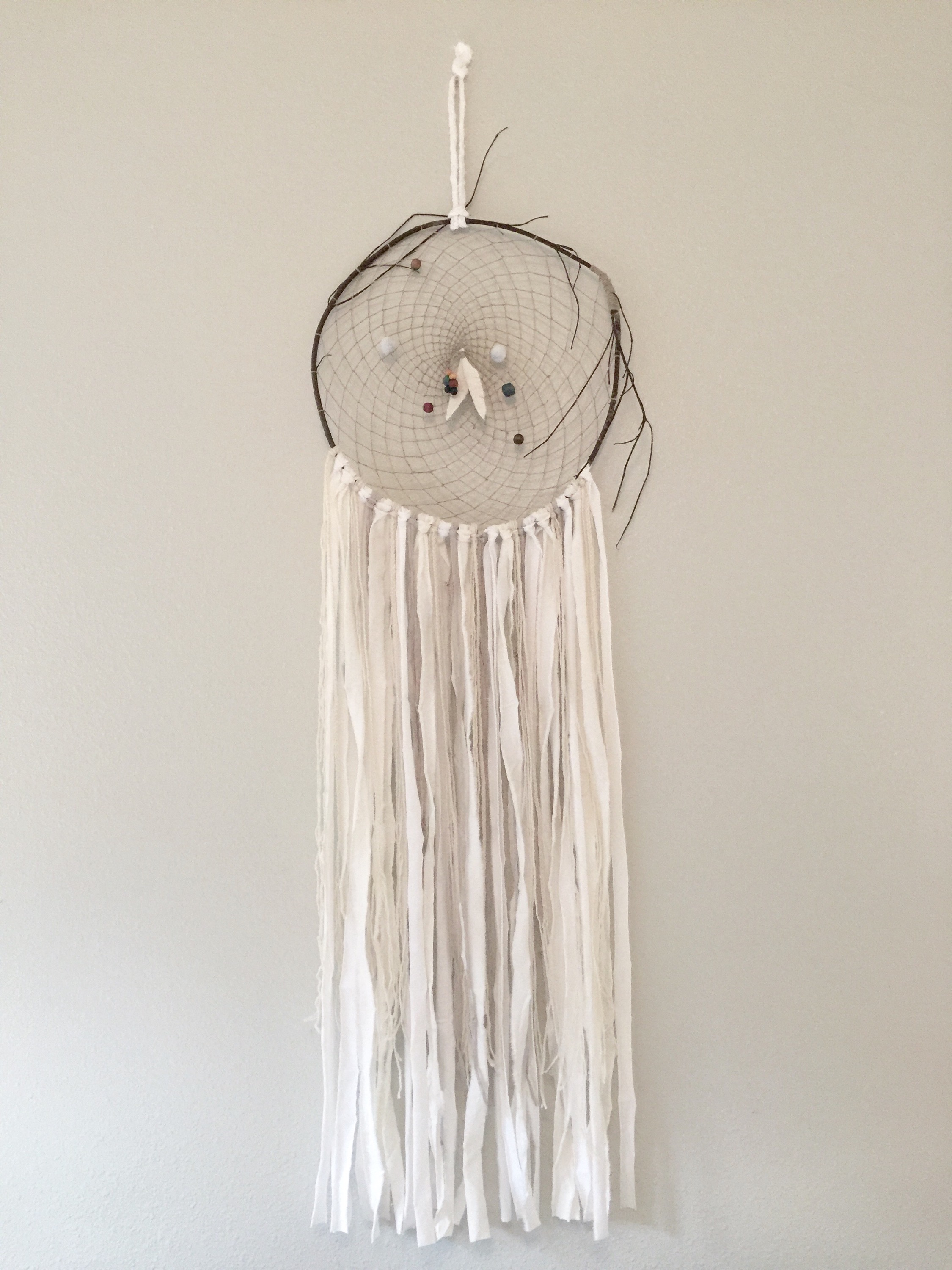 This geometric star is inspired by traditional Finnish straw ornaments called Himmeli. (The root word “himmel” means sky or heaven in German, Swedish or Norwegian.) The foundation of the Himmeli is the triangle. Tying varying lengths of straws into triangles, and then combining the triangles into 3-dimensional structures, you can create all sorts of beautiful sculptures. Made of tightly rolled magazine paper threaded on silver floral wire, this unique wall decoration is light enough to hang on a pin. I have used it to display tillandsia (air plants) and it even was the star topper to our tree last Christmas.