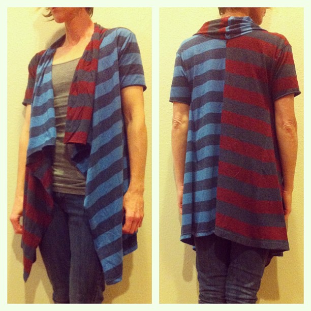 I decided to finally finish this wrap that I began during my 365 days of creativity. It is constructed from two XXL men’s t-shirts.