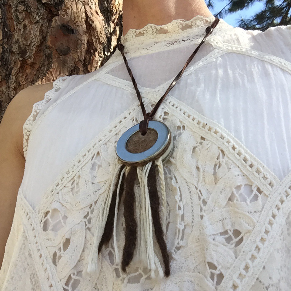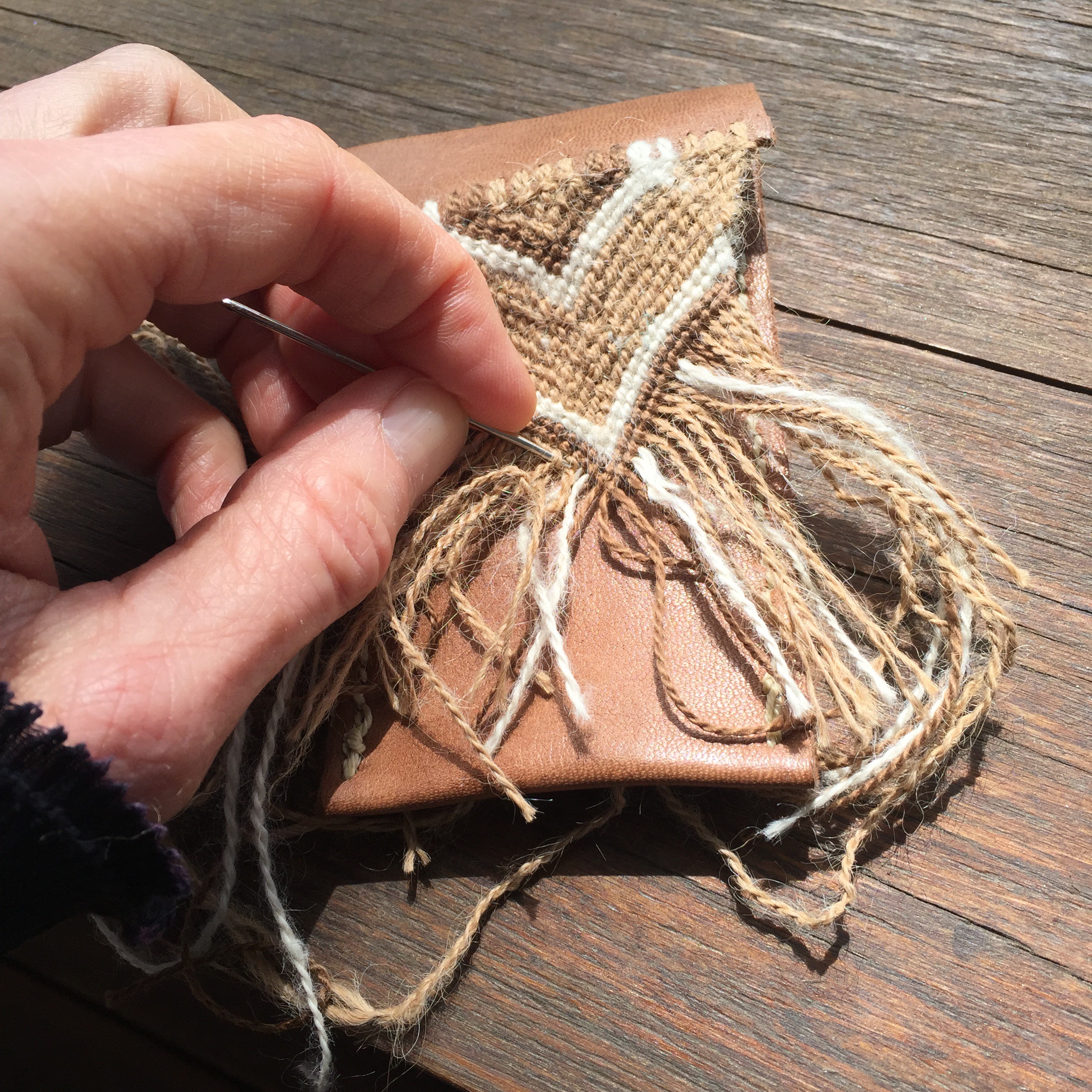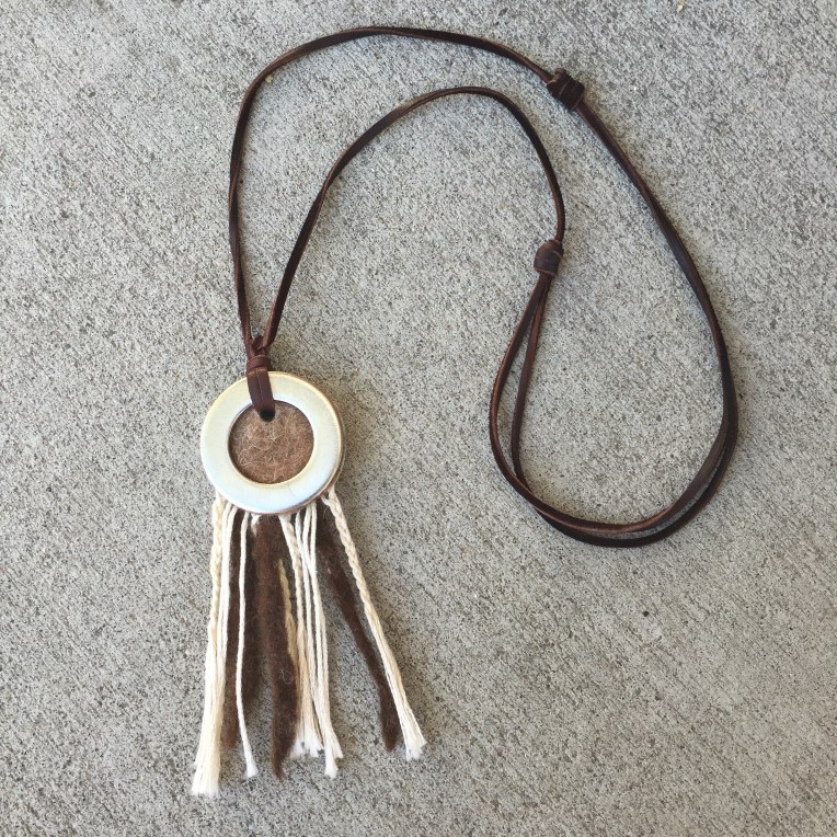 Finally we cut up an old, dark pink, wool sweater that we first felted by washing and drying hot. Felted wool can be cut without unraveling. We used a sewing machine to stitch around the edge with pink thread, filling the heart with polyester fill that we had saved from an old stuffed animal. “Love” was handstitched onto the heart with cream wool yarn.