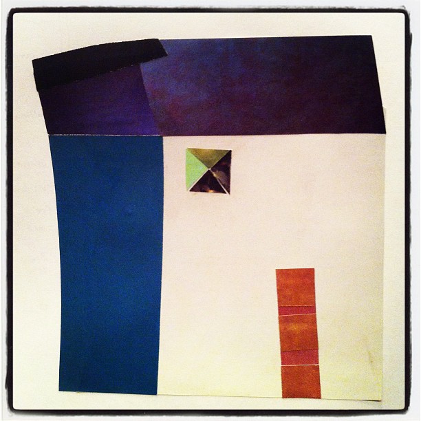 Day 245 – Collage with magazine paper. The process is additive, and I almost always try to build out to a rectangle. I love ordering and aligning the random pieces in my collection of magazine scraps. The precision is satisfying. Sigh. The detail and color are hard to capture with an iPhone. (Taken with Instagram)