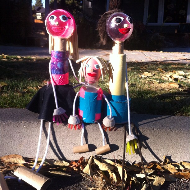 Day 273 – We pulled out these old recycled dolls because Adin wanted to bring them to school for show&tell. I helped her add hands, feet, and hair to the little girl and then duct tape decoration to all three. She thinks the family needs a dog.