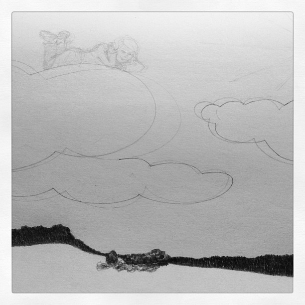 Day 221 – The faint beginnings of another sketch for a page in the children’s book. I’ve started over at least 3 times because I keep changing my mind about the type of landscape. And the little girl’s reclining position is a challenge for me. (Taken with Instagram)