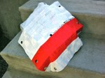 While researching creative uses for my bins of scrap fabric, I found a pattern on bhg.com for a pouf. I chose an outdoor cotton duck fabric and pretty much followed the bhg.com instructions verbatim except that I opted for minimal hand stitching to finish the top and bottom octagons. To fill the pouf, I used two large storage bins of scrap fabric and fiber fill from three old pillows. It was very satisfying to use so much “waste” to create something so useful, lasting, and attractive. To be totally honest, I am not in love with the octagonal shape. If I make any more poufs, they will be cubes. I found two wool blankets at a thrift store that I felted just for this purpose. Since I am all out of fabric scraps for filling, I can purchase bags of rejected thrift store clothing for $0.10/lb.